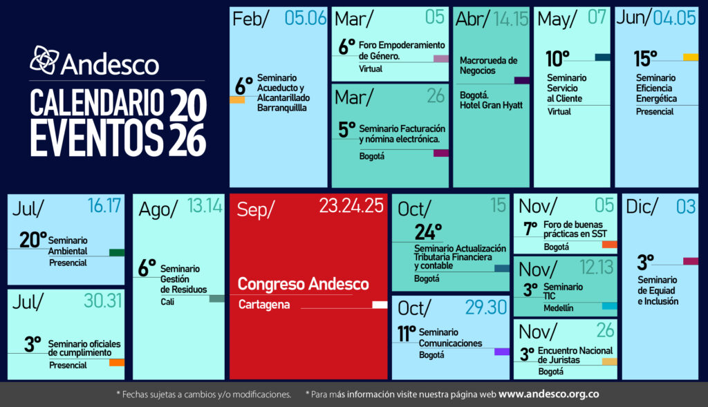 Consulta ya el Calendario 2026 y regístrate: https://andesco.org.co/eventos/